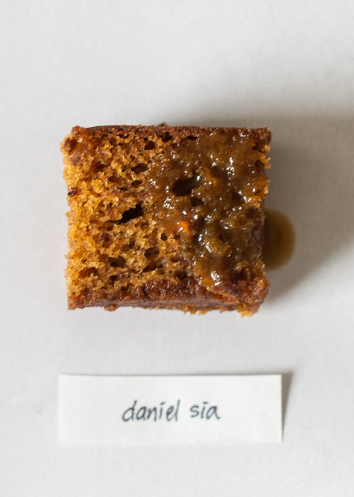 Accordingly, this was by far the cake with the darkest, smokiest notes. Thanks to the mashed date technique, there were irregular chunks of dates strewn throughout the cake. Personally, I didn’t dislike the bites of sugary dates, but it wasn’t my preferred texture in tandem with the slightly coarser cake texture. The bits of date also sort of overrode the flavor of the cake itself to me (one taster likened this to rye bread which is perhaps not entirely inaccurate). I liked the darker flavor of the toffee sauce, but it wasn’t a cake I found myself returning to as my American palate tended towards the lighter toffee sauces.
