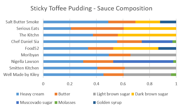 While every sauce was tasty in its own right, some felt like more of a caramel sauce rather than a toffee sauce. To me, the sauces that leaned more caramel were those that used light brown sugar. Sauces with golden syrup, treacle, molasses, dark muscovado sugar or dark brown sugar had slightly darker, bitter or just more complex notes that offset the sweetness and added depth.