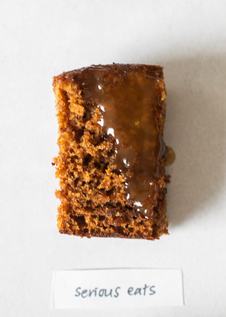 Serious Eats: a coarser-crumbed cake with a rich, butter-forward sauce