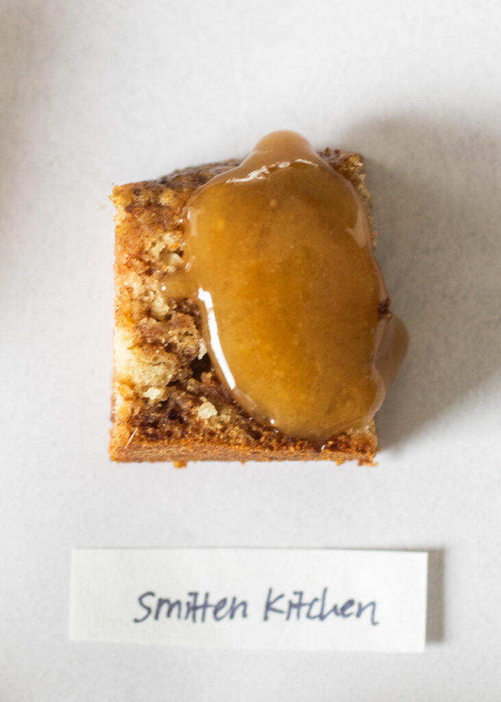 But even with all the issues thanks to my own baking errors, tasters still enjoyed this cake! Both the toffee and the cake had a milder flavor that struck me more as a caramel cake rather than the darker notes of a traditional sticky toffee pudding. Despite my errors, I encourage you to try this recipe if you prefer a lighter caramel profile to your sticky toffee pudding! (Though personally if I were to make this again, I would use Deb’s note to try dark brown sugar in the toffee sauce.)