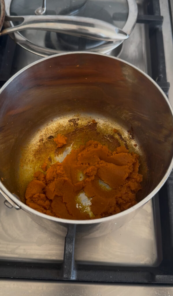 - Add 1/2 cup pumpkin puree to a small saucepan and cook over medium heat, stirring occasionally, until reduced by almost half (around 4-6 minutes). The puree will thicken and turn a few shades darker. You should end up with around 75g of reduced puree, but a little more or less is fine!