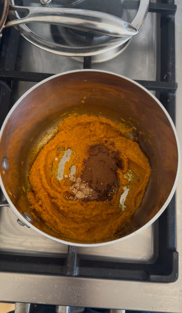 Step 1: In a small saucepan, cook the pumpkin puree over medium heat, stirring occasionally, until reduced by almost half.