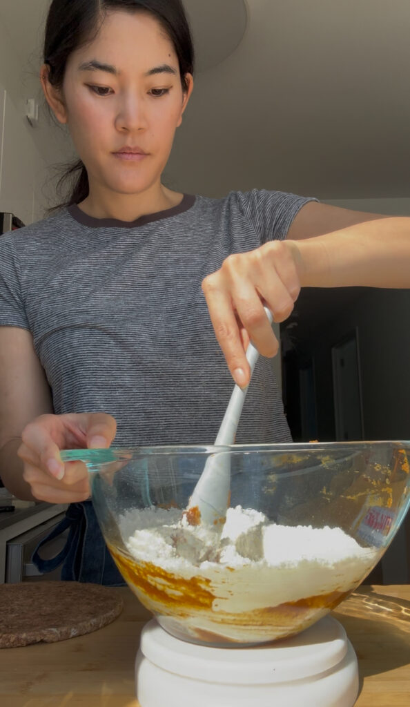 I used one of my favorite recipes from the bake off, I Will Not Eat Oysters, as inspiration. This recipe is genius the way it cooks down pumpkin puree for a concentrated pumpkin flavor, but I wanted a slightly chewier, less cakey cookie. For the actual cookie ratios, I looked at Sarah Kieffer’s white chocolate macadamia nut cookie recipe–I loved how doughy and fudgy her cookies, and figured they’d be a good jumping off point while incorporating reduced pumpkin puree. After around 5 different attempts, here are the changes I made: