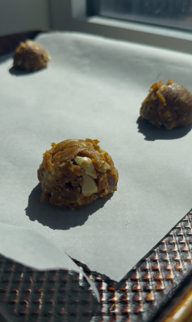 Step 7: Scoop cookies using a #20 scoop (or 3 tbsp) onto a parchment-lined baking sheet.