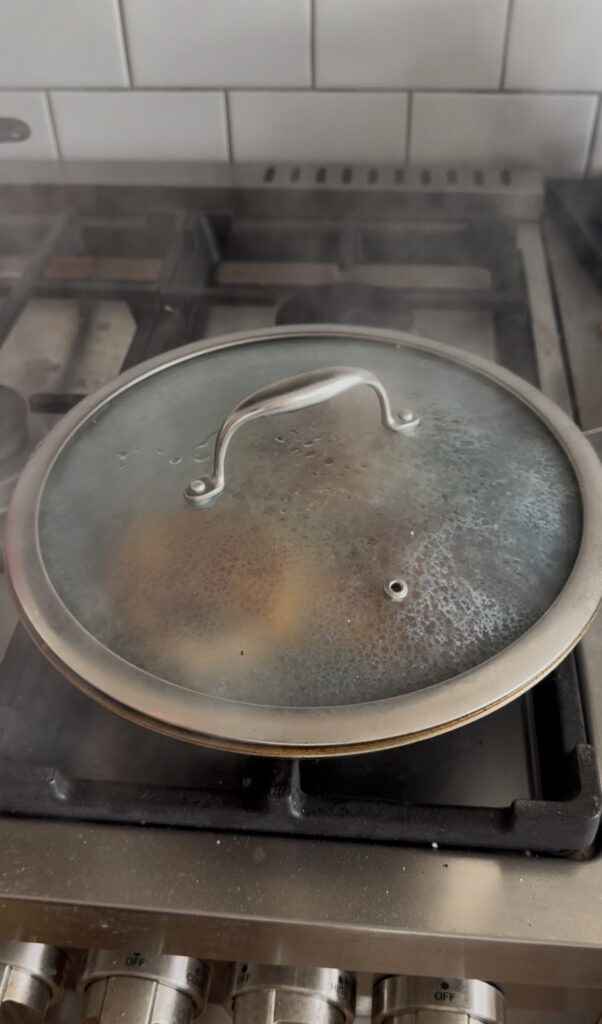 Step 5: Add 2-3 tsp of water to the pan, cover and let steam for 2 minutes to cook all the way through.