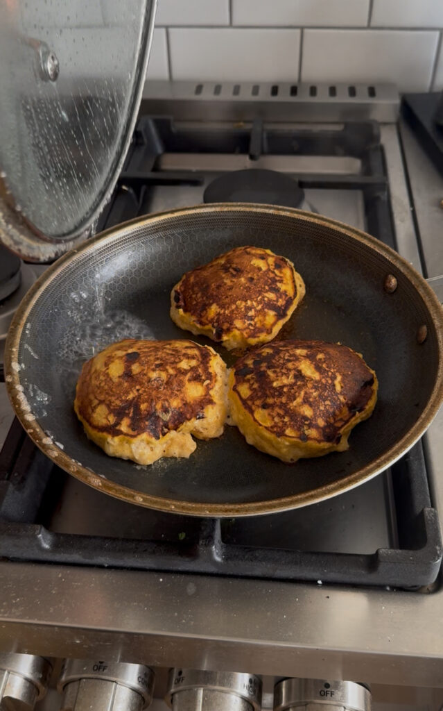 Definitely dense but I love dense thick pancakes. Didn’t taste that much pumpkin which is maybe a pro for some but for me I might add more pumpkin pie spice next time!