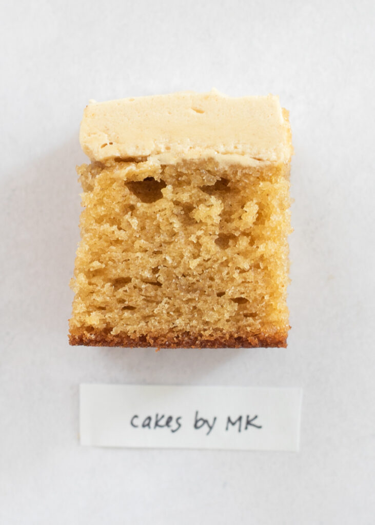 - I LOVE this frosting. I would marry whoever made this frosting (although it feels brown butter forward first, then peanut butter. Strangely reminiscent of toasted marshmallow or homemade Rice Krispies). The frosting made this cake higher in rating for me even though the cake itself is not my favorite, a little more dry.